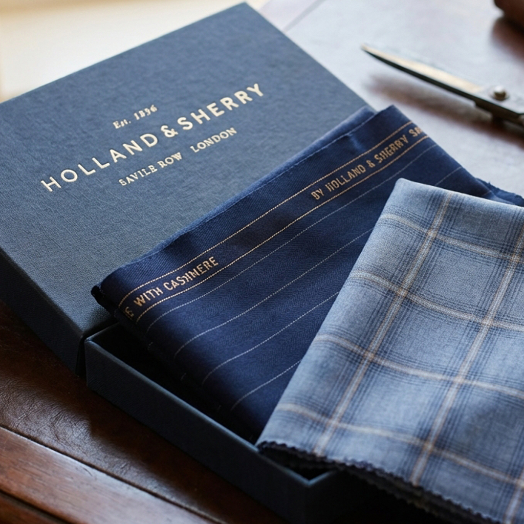We offer an exclusive selection of premium fabrics, including our in-house Signature range alongside renowned mills such as Cavani, Loro Piana, Scabal, Vitale Barberis Canonico, Holland & Sherry, and Ermenegildo Zegna.