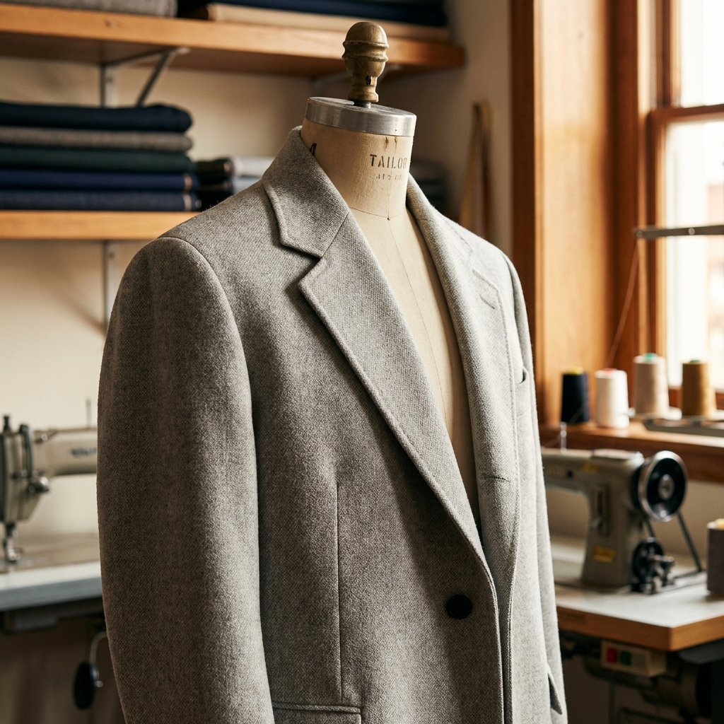 Custom-fitted outer garment designed to provide warmth and elegance, perfectly complementing formal or business attire.