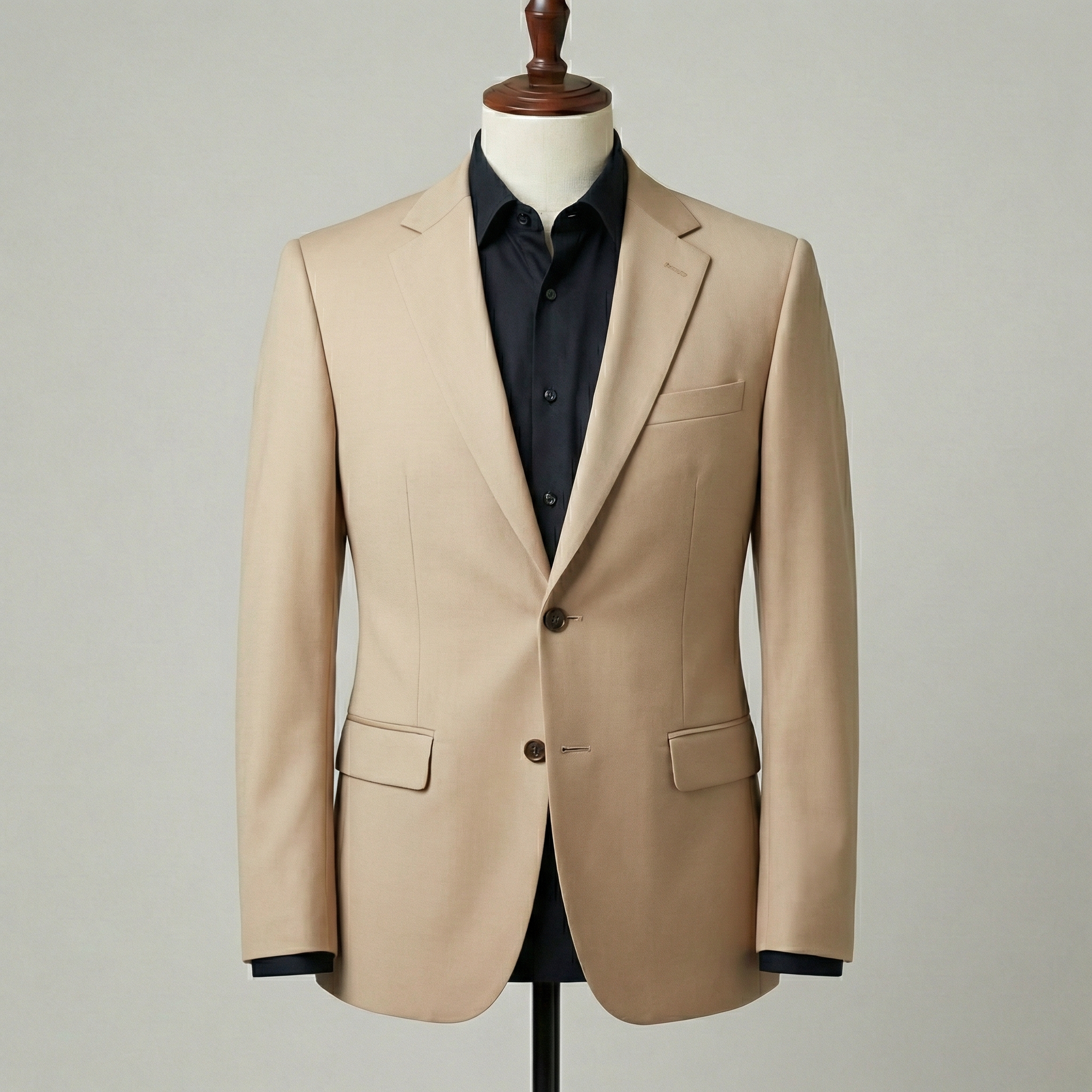 This distinguished camel tab suit captures timeless sophistication with effortless versatility. Tailored from premium wool (or a luxurious wool blend with the characteristic soft hand and subtle lustre of fine camel hair-inspired fabrics), it presents a refined neutral tone—warm beige with gentle undertones that complement a wide range of complexions and wardrobes.