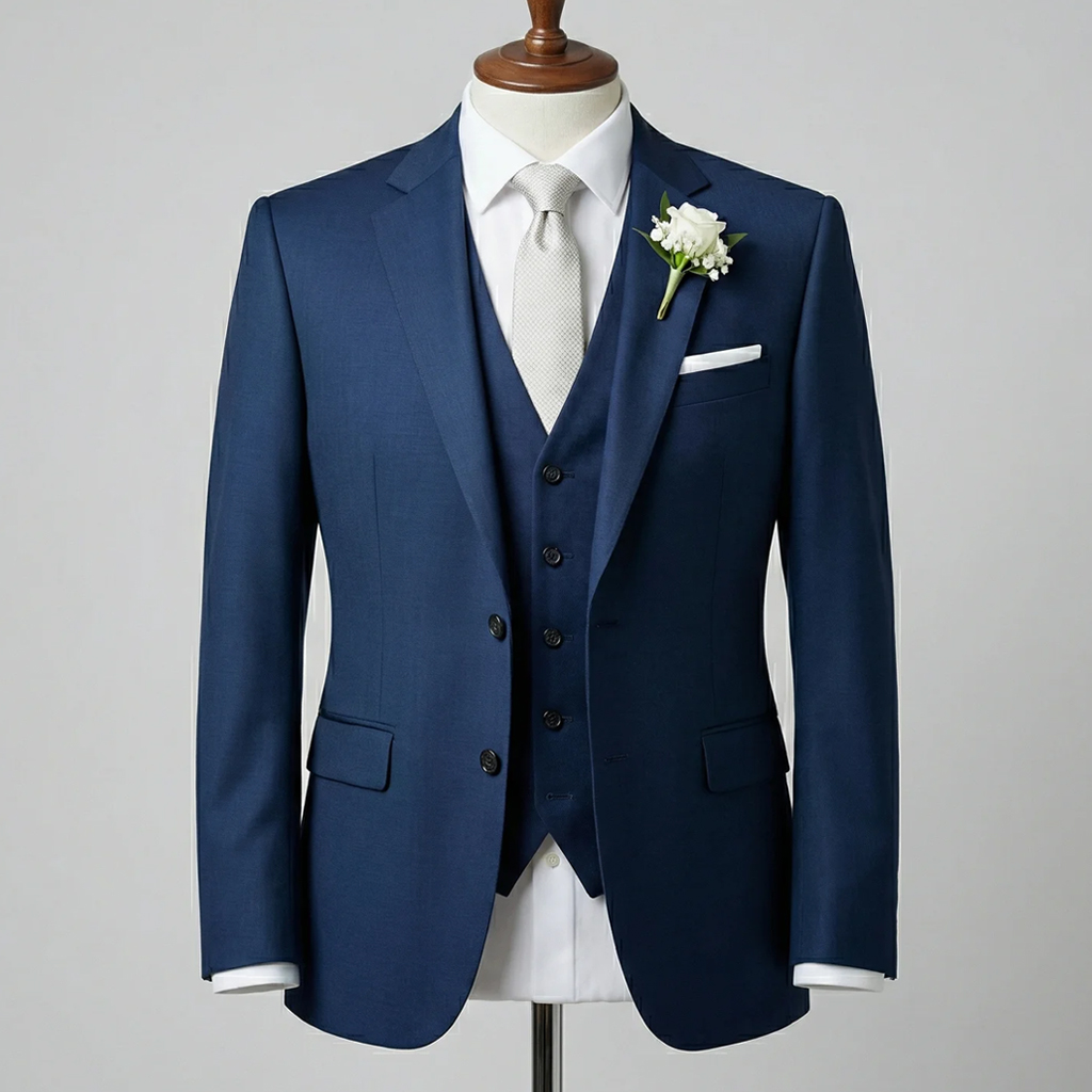Command attention and embody timeless sophistication with our Classic Blue Three-Piece Suit, a quintessential choice for the modern gentleman. This ensemble is meticulously designed to provide a sharp, commanding presence at weddings, galas, or high-stakes boardroom meetings. The deep, rich blue hue offers a vibrant yet professional alternative to traditional charcoal, ensuring you stand out with quiet confidence.
