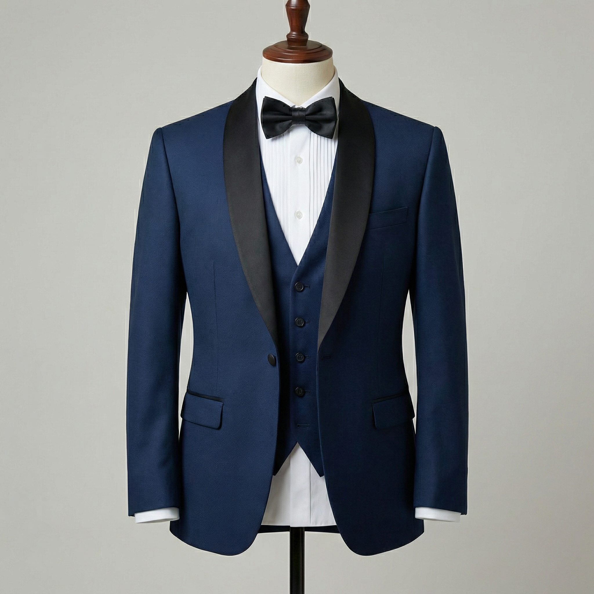 Elevate formalwear to its sharpest expression with this impeccably tailored navy tuxedo. Designed for black-tie occasions and milestone events, it delivers a refined silhouette with modern precision.