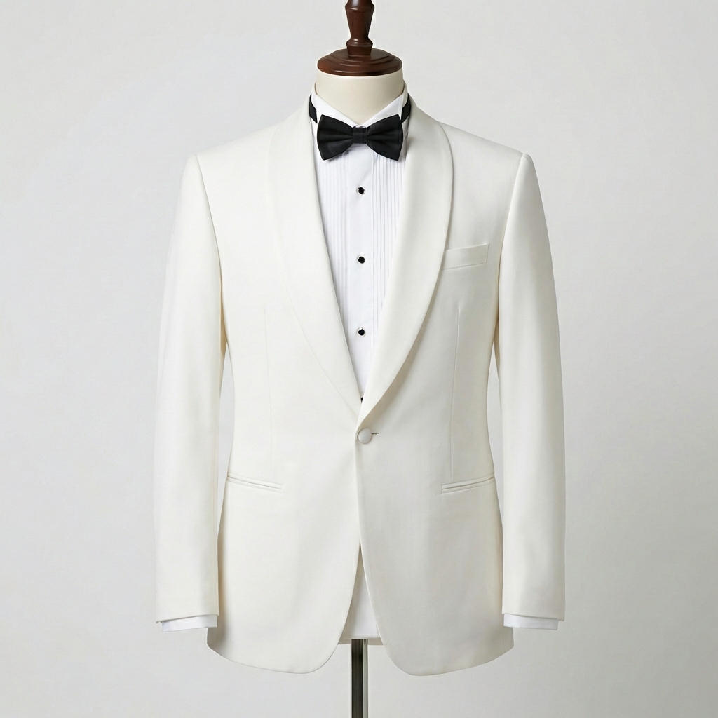Constructed from a premium, lightweight blend, this jacket offers a soft touch and structured drape that stays sharp from the first toast to the final dance. Whether you are walking the red carpet, hosting a gala, or celebrating a wedding, this ivory dinner jacket serves as a bold yet timeless alternative to the traditional black tuxedo. It is the ultimate choice for the gentleman who leads with style and settles for nothing less than perfection.