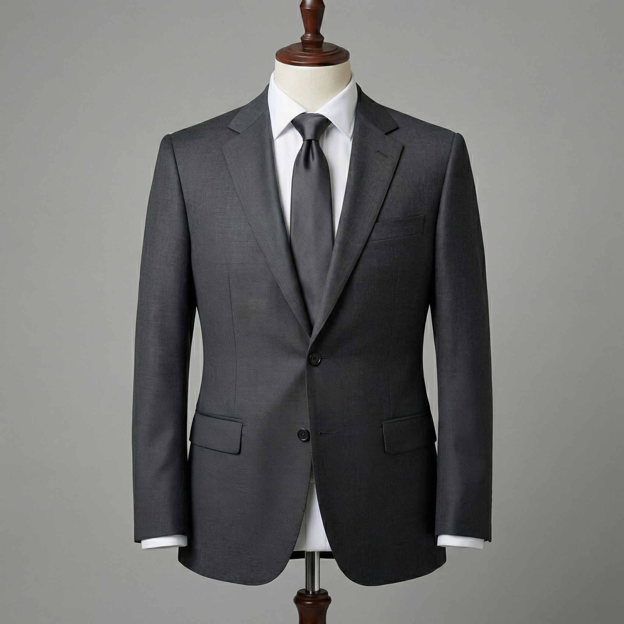 This impeccably tailored single-breasted suit in sophisticated charcoal grey delivers timeless elegance and understated authority. Crafted from premium wool or wool-blend fabric with a smooth, refined weave, its deep neutral tone strikes the perfect balance—darker and more commanding than medium grey yet more versatile and forgiving than black—making it an essential for year-round professional and formal wear.