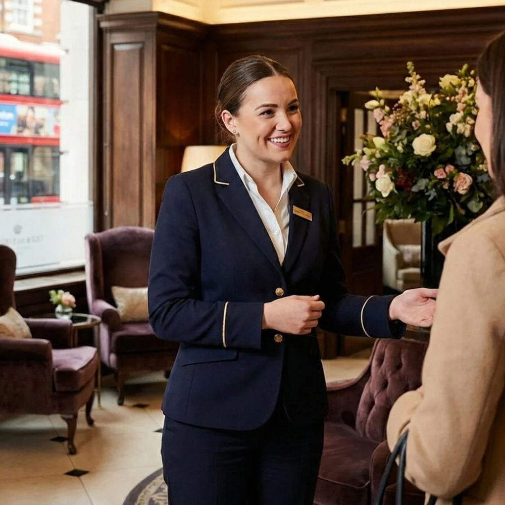 At Noble Fox, we specialise in designing and tailoring refined, bespoke uniforms specifically for hotels and hospitality teams.