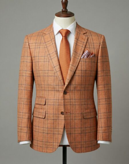 This distinguished burnt orange check suit radiates warm, confident sophistication