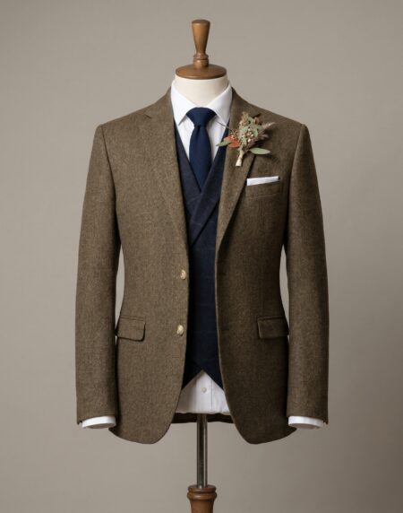 Experience timeless British countryside elegance with this made-to-measure three-piece suit in rich, earthy olive-brown tweed. Tailored precisely to your measurements, this ensemble captures the essence of classic heritage style whilst offering modern comfort and impeccable fit—ideal for autumn or winter weddings, formal occasions, or sophisticated day-to-evening wear. Prices start from £790
