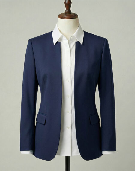 Discover timeless elegance with this navy blue tailored blazer for women — the cornerstone of sophisticated dressing.
