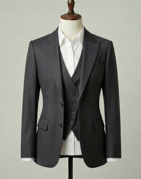 Elevate your formal wardrobe with this timeless charcoal grey three-piece suit — the perfect blend of sophistication, versatility, and modern refinement.