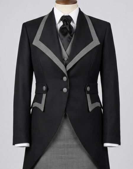 This Traditional Morning Dress with Grey Trim is a distinguished, heritage-inspired formal uniform tailored specifically for funeral directors and professionals in ceremonial roles requiring maximum solemnity and refined authority.