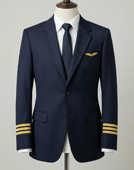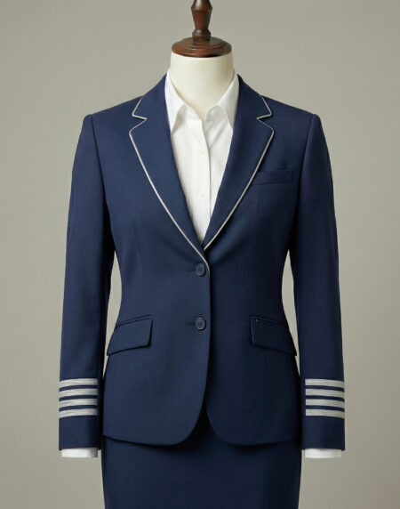 Project professionalism and style with our bespoke tailored suits and uniforms for pilots and cabin crews, crafted to your exact measurements for a flawless fit and polished appearance. Made from premium fabrics with personalised details, our custom airline uniforms combine comfort, durability, and sophistication, ensuring crew members look confident and distinguished at every flight.